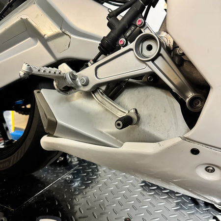 - Supplied with rubber plug in the lower fairing for quick drainage of liquids (according to FIM regulations)