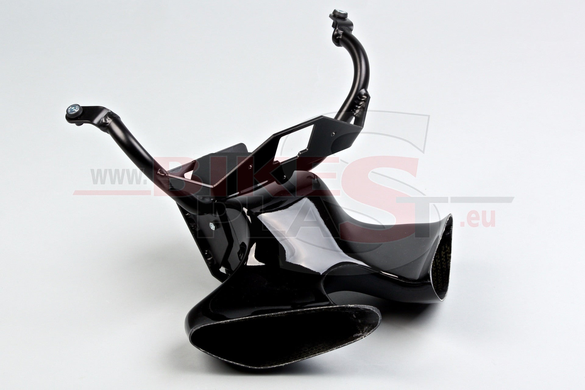 Made from top quality aerospace aluminium alloy with superb powder coat finish in black color. Including fiberglass air duct with Kevlar/Carbon reinforcements allowing better airflow for your bike.