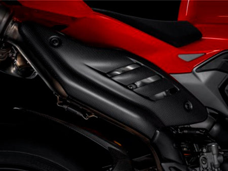 The double under-seat silencer makes the design of the bike even more unique and enhances the unmistakable aesthetics of the Streetfighter V4 with an additional touch of aggression.