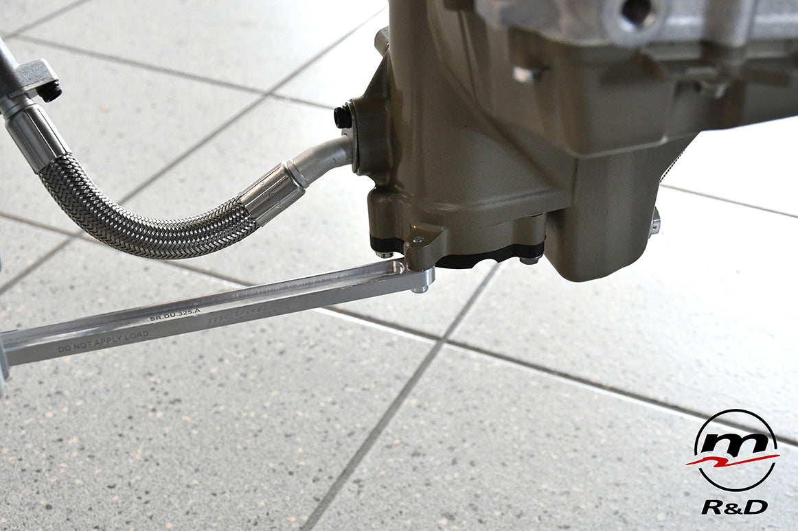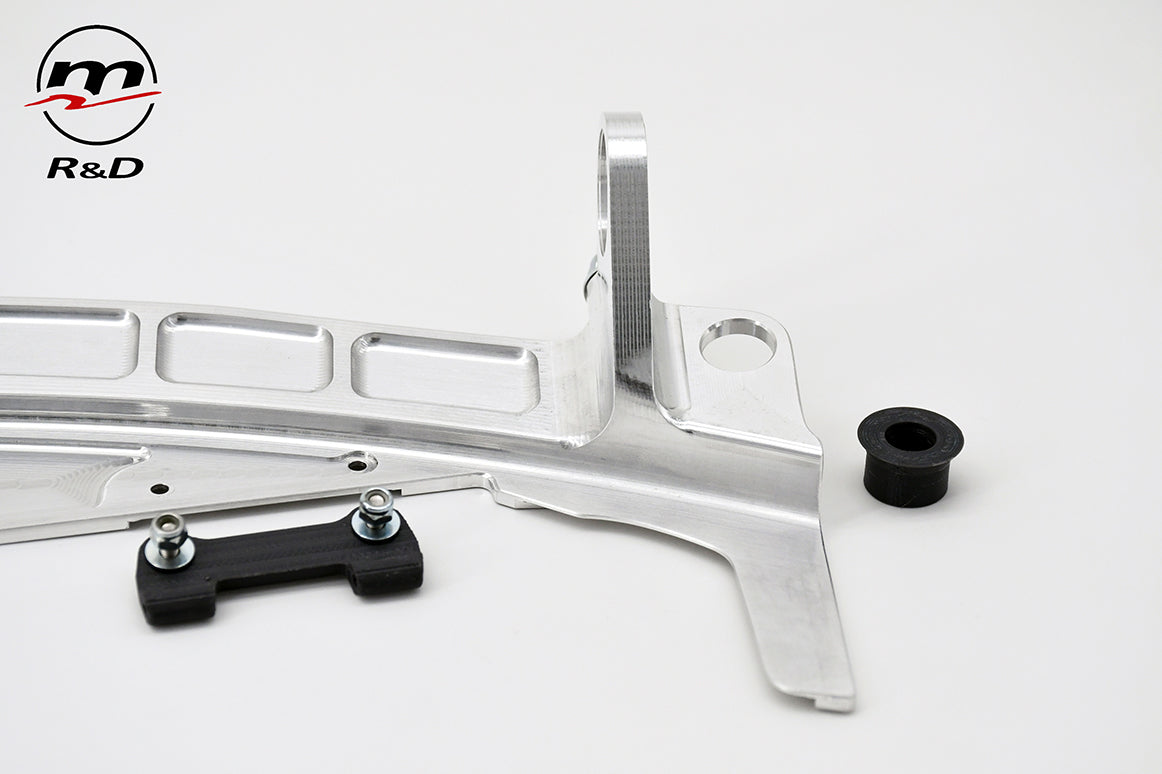 – 1 Connecting strut between the engine block and the oil radiator, also made of aluminum alloy, CNC machined