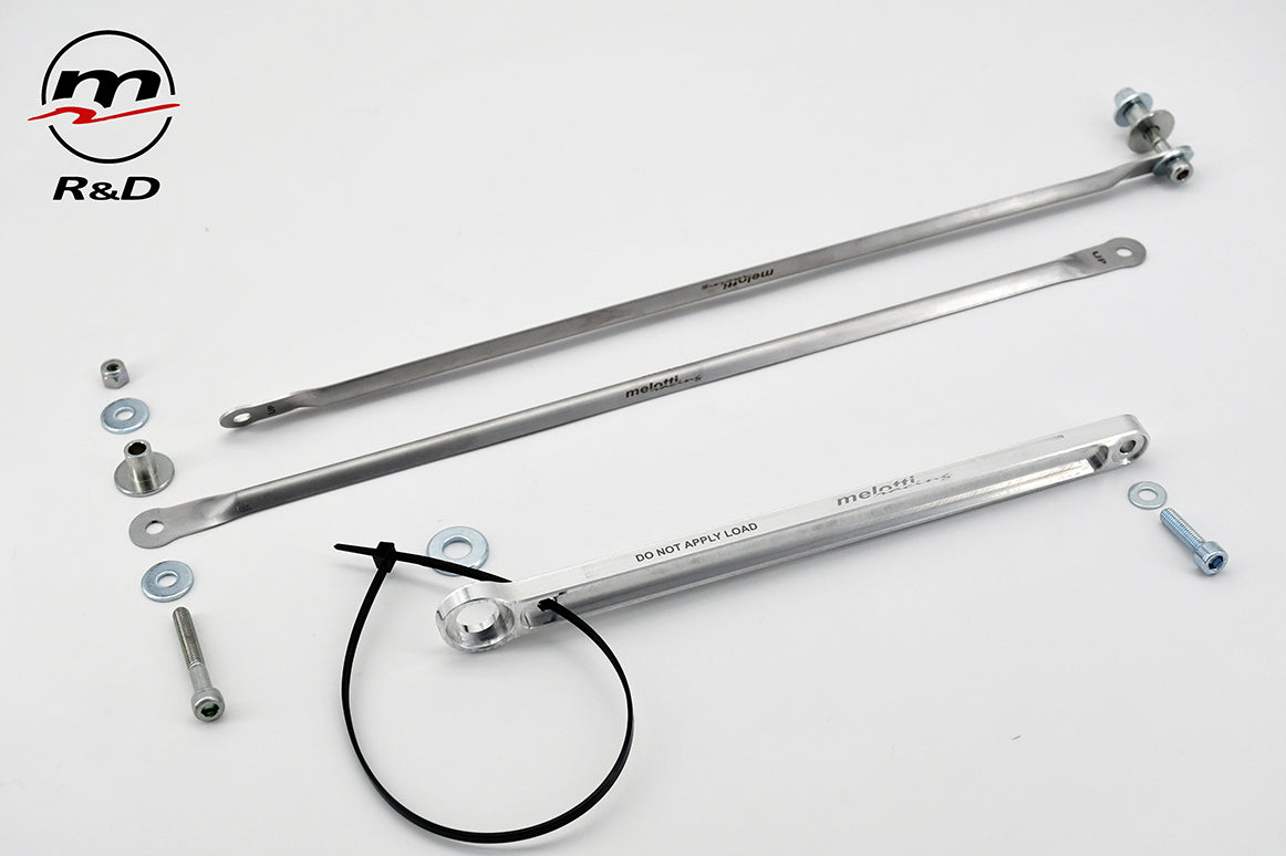 – 2 Oil radiator support tie rods made of stainless steel, “lance” shaped to not compromise the air flow