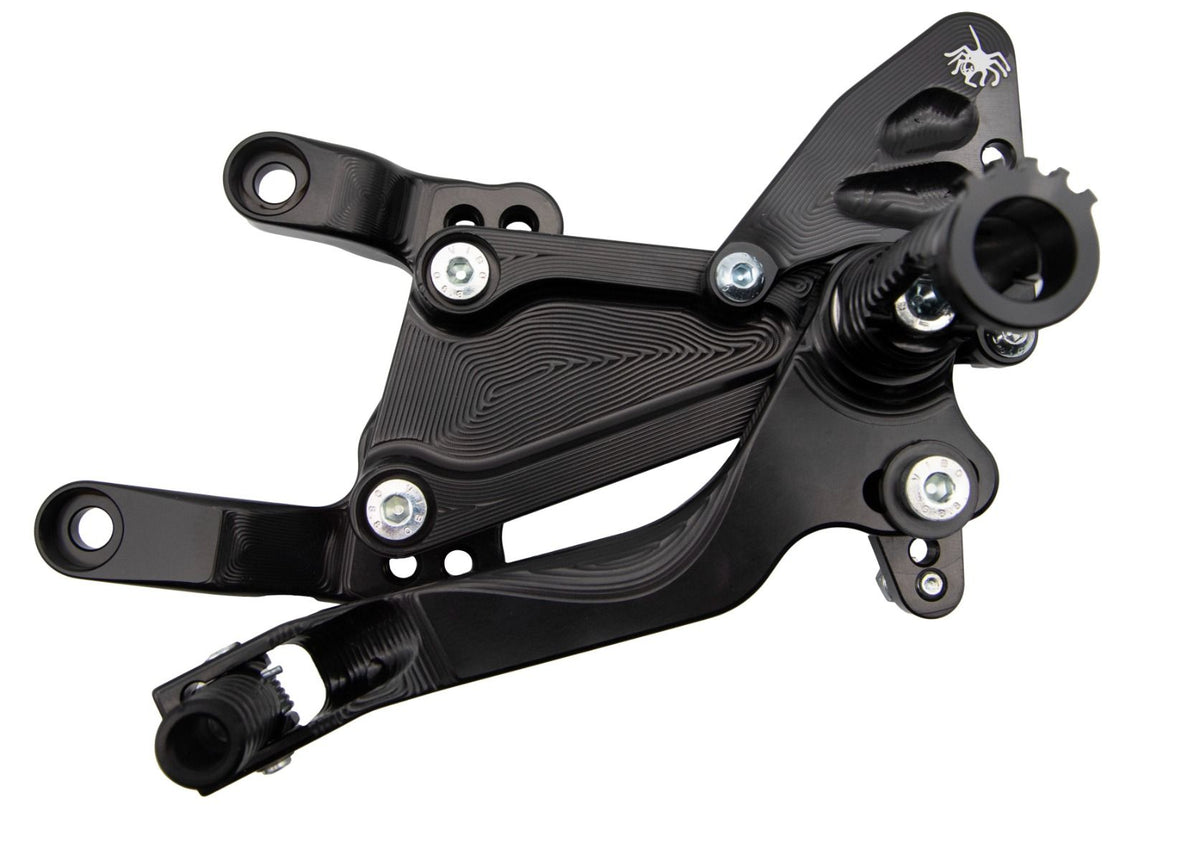 Spider Racing Rearsets are 100% CNC machined from high grade 7075 alloy solid billet providing maximum strength, the highest quality, with a uniquely Italian design.