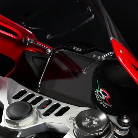 Our dashboard protection is designed in response to the growing demand in racing to safeguard the latest generation displays—sophisticated and valuable devices. Built from special aluminum capable of absorbing shocks and precision CNC machined, these protectors ensure durability and safety. Additionally, they feature an interchangeable Plexiglass panel for added convenience and protection.