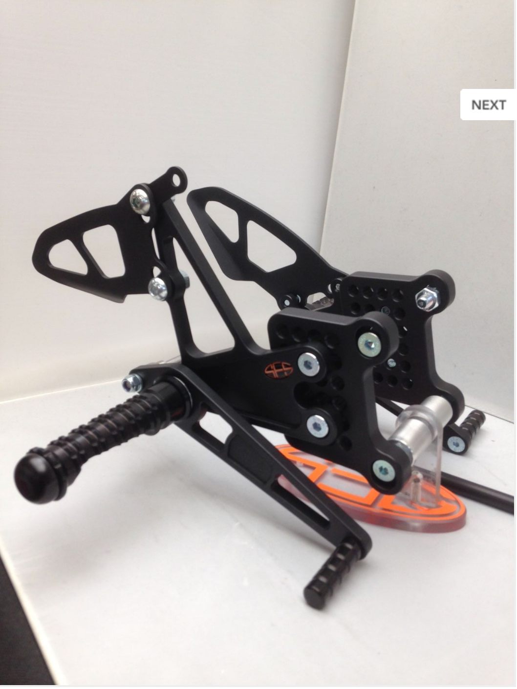All our adjustable rearsets offer interchangability between different styles of foot pegs but are now supplied with the FP8H foot peg as standard (not the one shown in the photo).