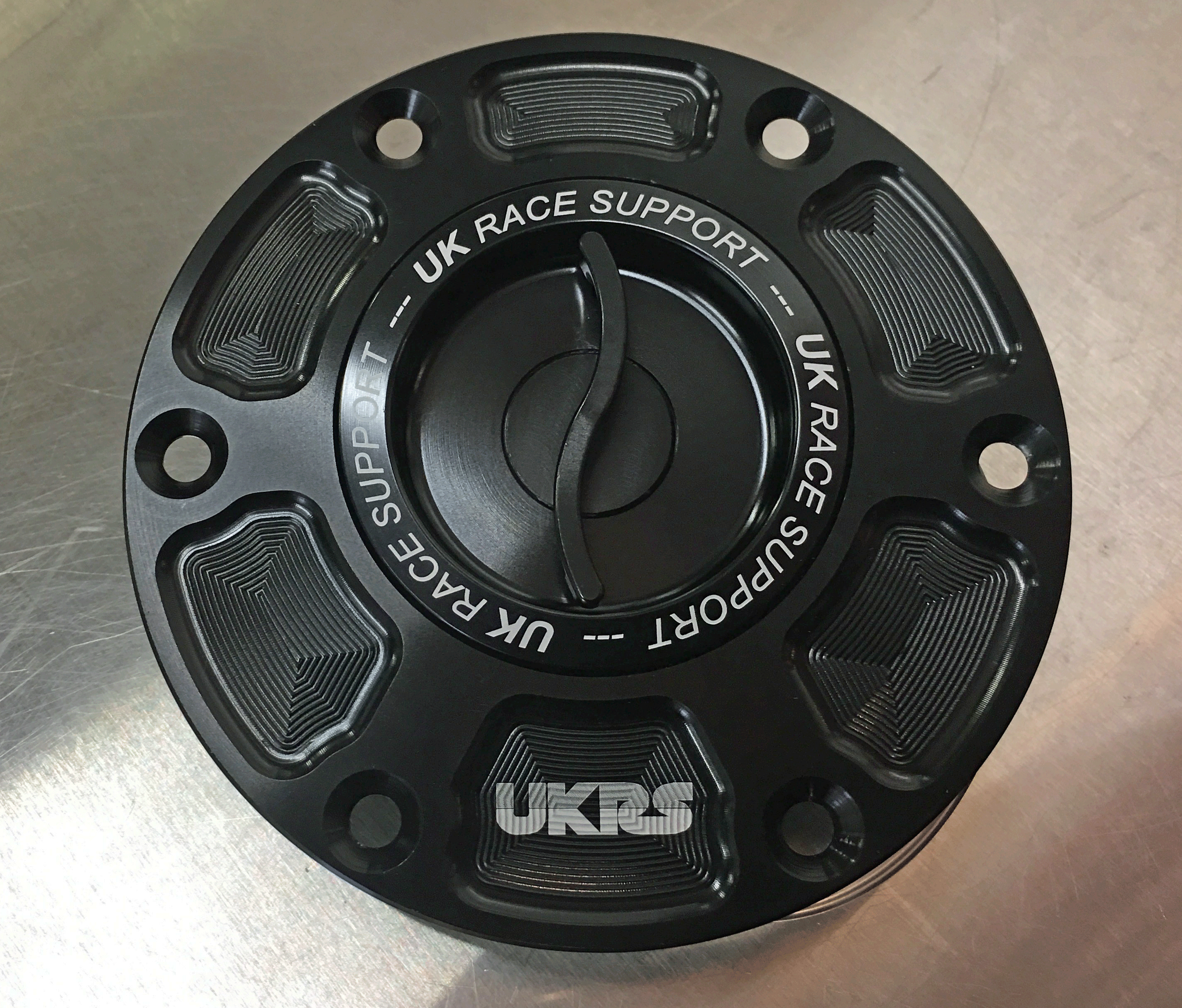 Quick action 1/4 turn to release/fit. No more wasted time in the pits trying to get the key in and cap off or the ultimate fuel cap for your road bike.