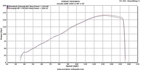 Scorpions flagship RP-1 GP exhaust is currently their most potent exhaust, complete with a distinguished 'RED POWER' tip inlay.