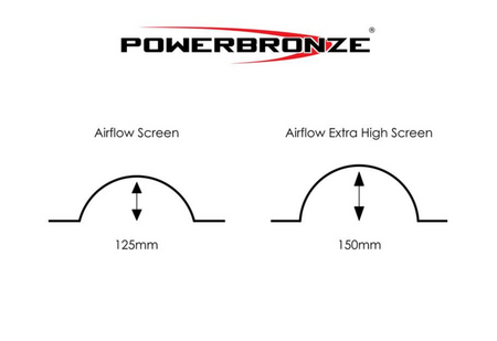 The Airflow windscreen (Double Bubble) has an aggressive upward sweep that pushes air higher without creating the turbulence normally associated with flip-up type touring screens fitted to sports bikes. These are based on race-proven designs and carry the 'Ride Recommended' tag. All Airflow windscreens (Double Bubble) have TUV and ABE type approval.