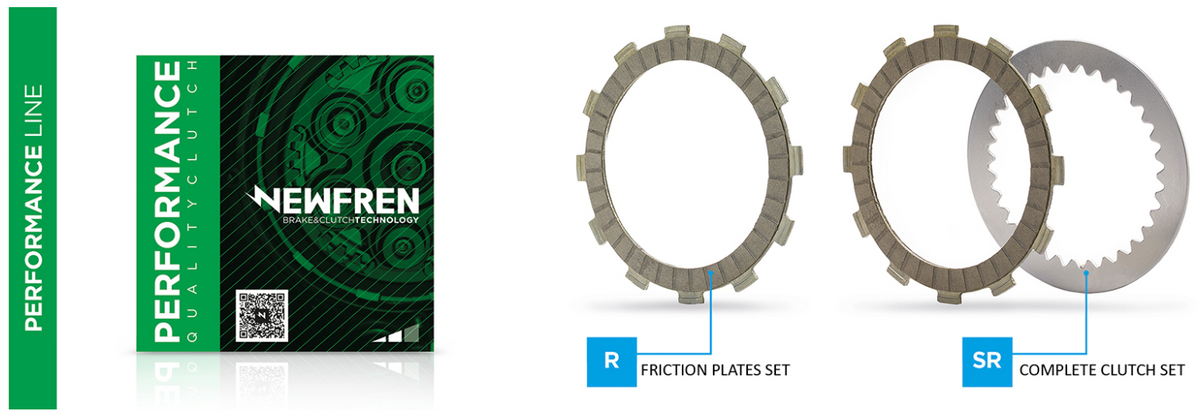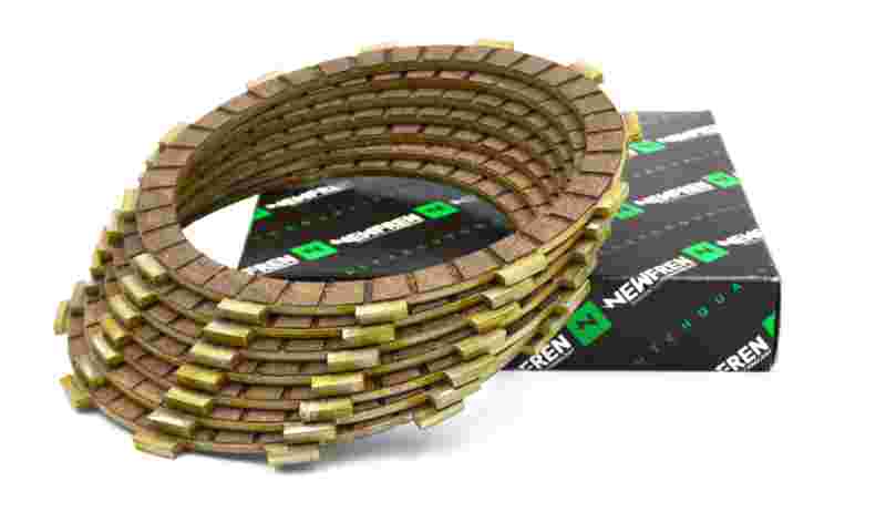 Newfren produces a complete range of clutches with regard to applications and materials. Models ranging from the old 1946 Vespa 98 to the latest competition MXGP and Moto3, including single-disc dry clutches for BMW, from 1969 onward. It is, between clutch plates and centrifugal clutches, one of the widest ranges on the market. Newfren use an extensive range of organic and sintered friction materials developed for specific applications. The metal plates are made of special steels which are treated to maximize performance.