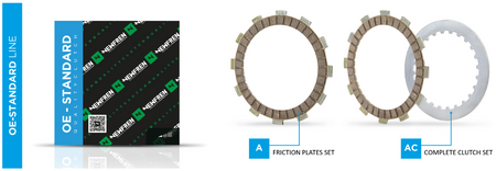 They are designed to replace the OE clutch, maintaining the same performance and durability. The OE-Standard clutch plate sets are made using top quality materials. They are exceedingly reliable products. The friction material of the plates is organic. The compound of the organic material is chosen in relation to the type and utilization of the motorcycle, thus optimizing performance, albeit within the manufacturer’s guidelines.