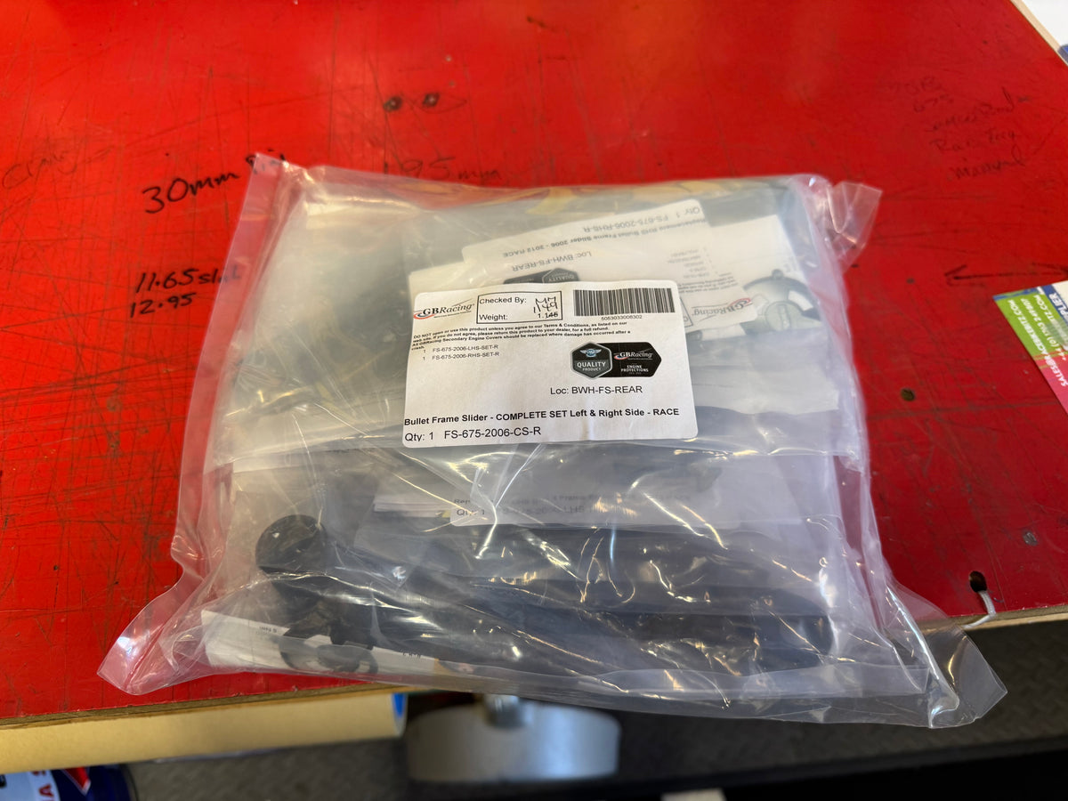 Easy Installation - Frame Sliders bolt onto billet aluminium brackets, which bolt to two existing engine mounts, no glueing, no bodywork modification or permanent fixing needed!