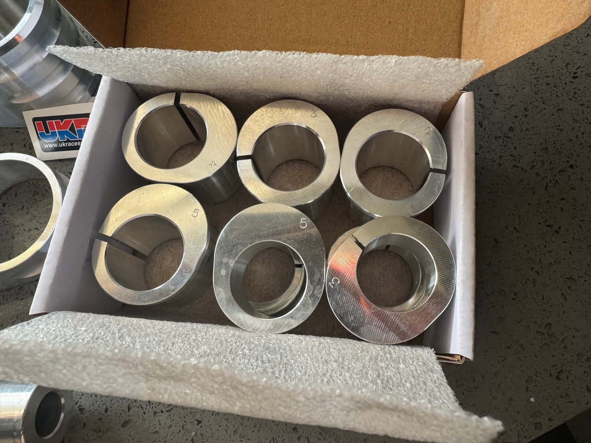 With our triple clamps, you get three inserts for the top clamp and three more for the lower clamp. The included inserts give you 28 or 33mm, 29 or 32mm, and 30 or 31mm. Extra set of inserts can be purchased separately to extend the offset range to 27-34 or 26-35.