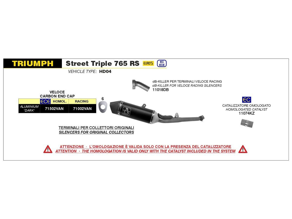 Arrows slip on exhaust for the Triumph Street Triple 765R/S/RS 2017-22.