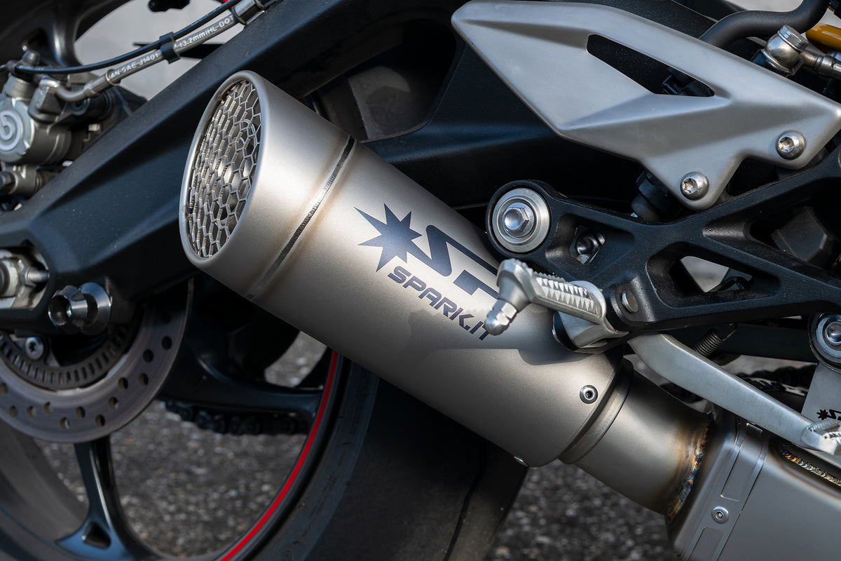 Triumph Street Triple 765 2021> Spark Stainless Steel Box & Grid-O Slip On (Homologated)