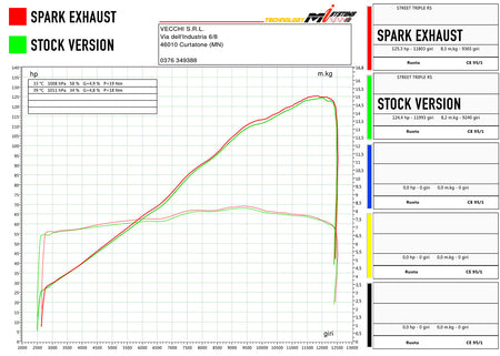 After the success of the Euro4 exhaust for the english 3-cylinder engine by Triumph, Spark developed a new Euro 5 homologated Slip-On for for Street Triple 765 RS. The standard mounting kit consists of a pre-silencing box including a catalyst allowing to keep all the grit of the Grid-O and Moto GP silencers, specifically designed for the World Superbike and Moto2 teams.