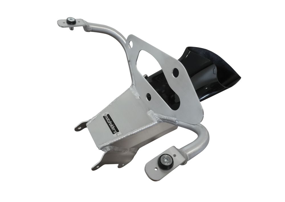 The bracket is made from lightweight aerospace grade aluminium. For strength and lightness. The air duct is fiberglass and made slightly bigger than stock to allow the fairing hole to also be made bigger for better ram air flow.