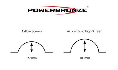 The Airflow windscreen (Double Bubble) has an aggressive upward sweep that pushes air higher without creating the turbulence normally associated with flip-up type touring screens fitted to sports bikes. These are based on race-proven designs and carry the 'Ride Recommended' tag. All Airflow windscreens (Double Bubble) have TUV and ABE type approval.