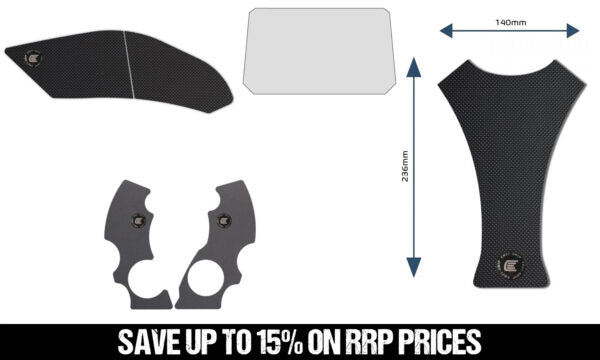 • Includes Scuff Guard Kit, Dashboard Protector, Tank Grips and a Centre Tank Pad