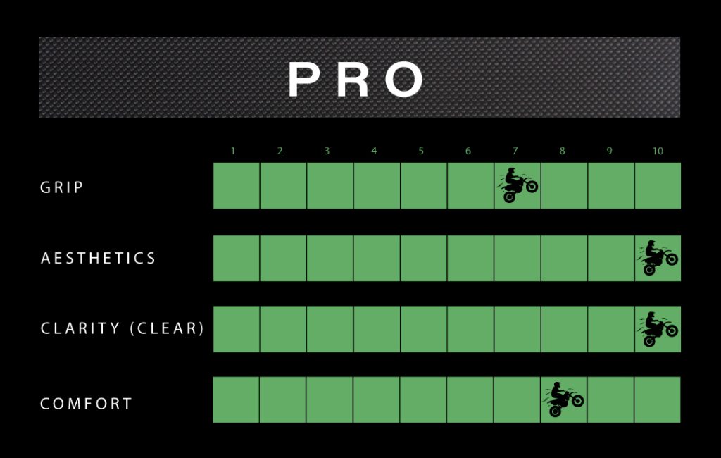 The ‘Pro’ series tank grip is a polyurethane grip that features a low profile circular embossed pattern with a sleek and dynamic profile that allows greater rider movement on the bike.  Available in Black or Clear.
