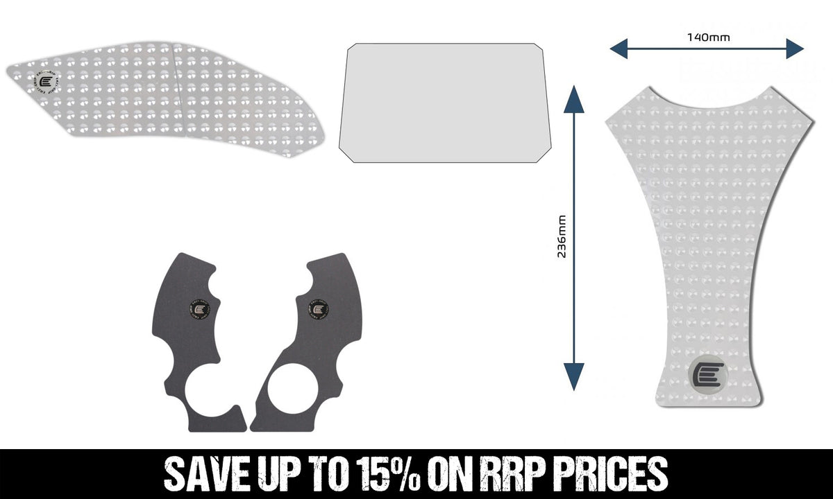 - Includes Scuff Guard Kit, Dashboard Protector, Tank Grips and a Centre Tank Pad