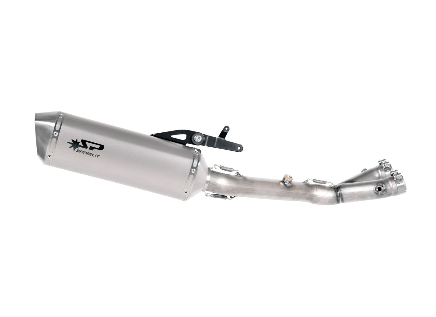 The full system is the state-of-the-art product developed together with teams racing important championships all over the world. Besides the study of the collectors' best sizing for performance optimization, the technologies and the structural details of such product ensure top reliability.  In fact, many teams have chosen Spark to face the Endurance World Championship. From the aesthetic point of view the segmented connecting tube is striking, with visible weldings enhancing the racing soul of the product. Weldings, segments and cones that are not merely a formal exercise but necessary solutions: after repeated bench tests such specific cones - out of the production standards - have been chosen as they allow the best torque. So, the top level product developed with Teams in World Championships is available on catalog, both with stainless steel and full titanium collectors. Here again different silencers have been combined according to the different dB level required: Force silencer lenght 350mm (GYA8831T and GYA8832T) for 102 dB for French and World Endurance Championships; Konix silencer lenght 300mm (GYA8847T) to be within 107 dB as required by European Stock1000; MotoGp silencer (GYA8850T) ... no dB limits. It is possible to add the dB killer to every silencer to reduce decibels further.