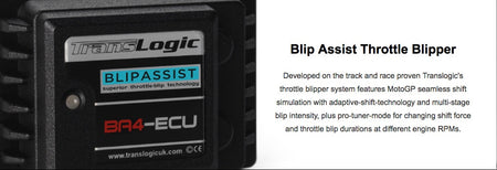 This new state-of-the-art Throttle Blipper system or Down Shifter is designed to compliment Translogic's Intellishift DCS systems and Powershift systems. The Blip Assist ECU interfaces with the engines throttle body connectors via the plug&play connectors. During down shifts either Translogic's DCS sensor or Powershifter ECU sends a signal to the Blip Assist ECU which then performs a controlled throttle blip depending on riding conditions at the time of the down shift.