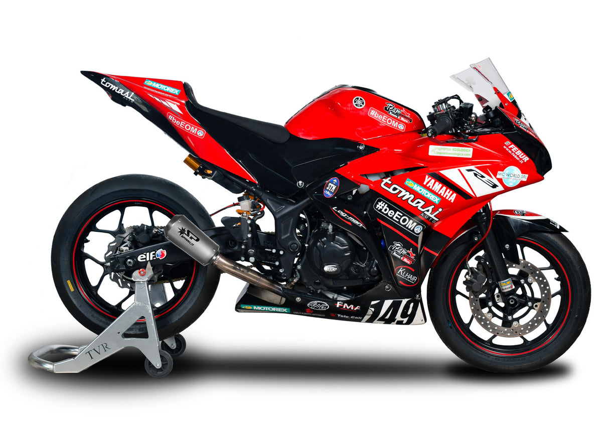 Yamaha YZF R3 2017-16 Spark RACING full system: AISI 304 stainless steel collector + MOTOGP silencer.