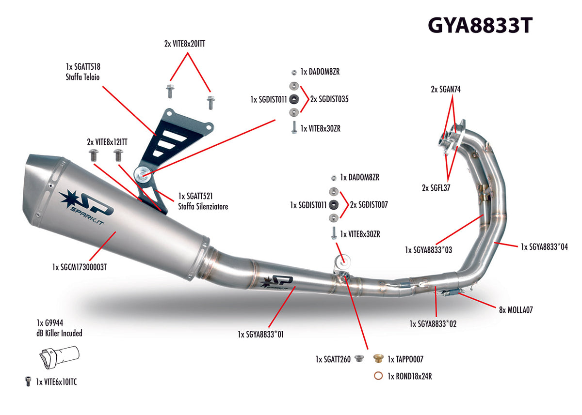 MotoGp silencer (GYA8855T) for an extreme (112 dB) and ultra-light version.
