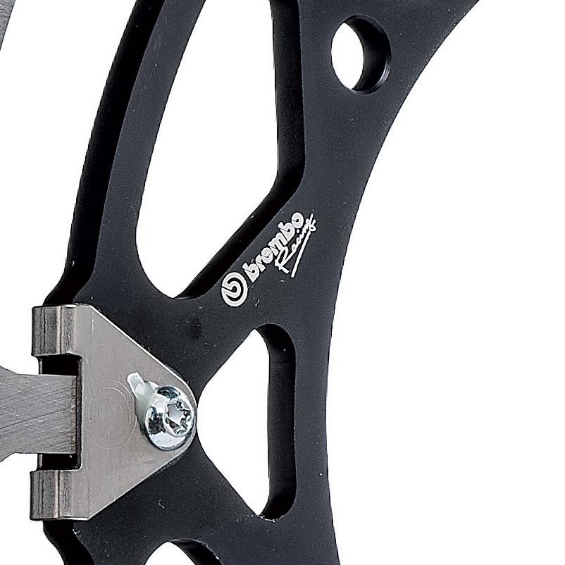 The housing is black anthracite anodised like latest generation racing discs. The Brembo logo is on the housing, machined from billet and painted in an unmistakeable red, yet another distinctive sign that characterises the racing image. All of the Brembo T-Drive discs can also boast the approval of the renowned TUV Certification Body which means they can be used on public roads in all countries that recognise this certification.
