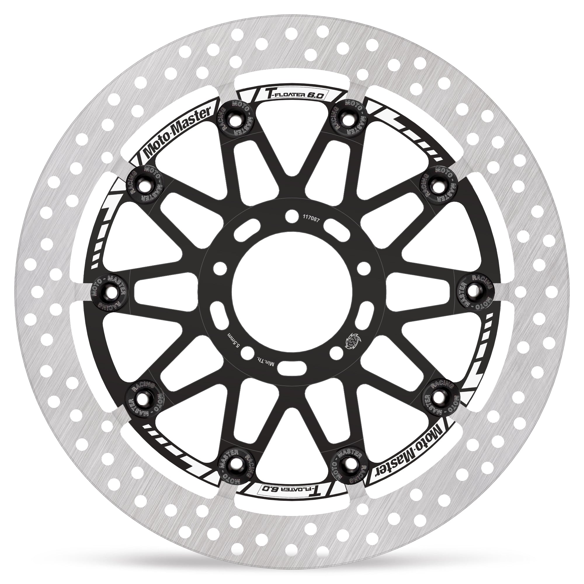Moto-Master HALO T-Floater Racing Discs with T-Floater system – The ultimate racing discs for serious professional riders. Now available in 6mm and WorldSBK 7.1mm thicknesses, in popular sizes ranging from 298mm to 335mm. Not for public road use.