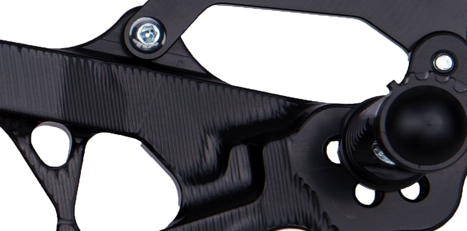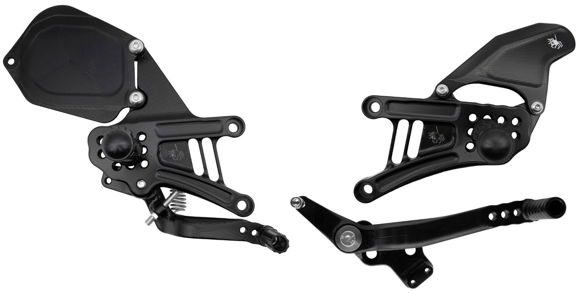 Spider Racing Rearsets are 100% CNC machined from high grade 7075 alloy solid billet providing maximum strength, the highest quality, with a uniquely Italian design. Monobloc design structure to ensure rigidity, ease of assembly and smooth shifting.